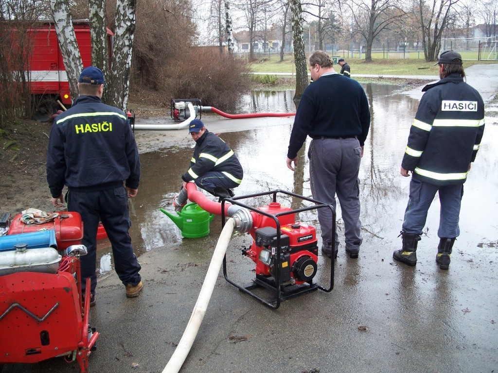Déle než měsíc trvající mrazivé období spojené s vydatným sněžením, které na celém území naší republiky způsobilo skutečně nemalé potíže, se již uchýlilo ke svému konci. Při oblevě však o sobě dalo znát obrovské množství vody ukryté ve sněhové pokrývce. Kvantum vody opětovně zaplavilo část místního areálu národopisných slavností a jelikož zde měla o víkendu proběhnout jistá akce, bylo nutné rozsáhlou vodní plochu odstranit. Na místo jsme se vydali v pátek 26. února po příjezdu z velitelského školení na stanici HZS Břeclav spolu s kolegy ze sousedního Týnce, kteří tím dostali příležitost otestoval svou novou čerpací techniku v podobě mimořádně výkonného kalového čerpadla. Sbor dobrovolných hasičů Týnec disponuje hned dvěma kusy těchto agregátů. Odčerpání rozsáhlé vodní plochy tak při nasazení obou zařízení a našeho plovoucího čerpadla skutečně netrvalo dlouho. Do dvou hodin jsme balili hadice a odjížděli na základnu.