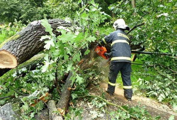 Dne 4.8.2013 se přes Jihomoravský kraj přehnaly silné bouřky, neminuly ani obec Tvrdonice a přilehlé obce.    Vlivem silného větru došlo k velkému množství pádu stromů a větví na komunikaci. V 22:00 hod. byl JSDH Tvrdonice vyhlášen poplach. Jednotka vyjela s vozidlem Tatra 815 CAS 20 (1+5) a s vozidlem Ford Transit DA (1+4) k spadlému stromu na silnici I/55 směr Hodonín u obce Hrušky. Při jízdě k zásahu jednotka narazila na popadané větve u firmy TRANSGAS ve Tvrdonicích směr Hrušky, proto událost nahlásila na KOPIS a provedla zásah odklizení větví z komunikace. Na základně spojením s KOPIS pokračovala k mimořádné události do obce Hrušky. Po příjezdu na místo bylo zjištěno, že se jedná o popadané větve na komunikaci, které následně odstranila. Poté byla jednotka vyslána k další mimořádné události a to zpět do obce Tvrdonice.| Obec | Hrušky |
