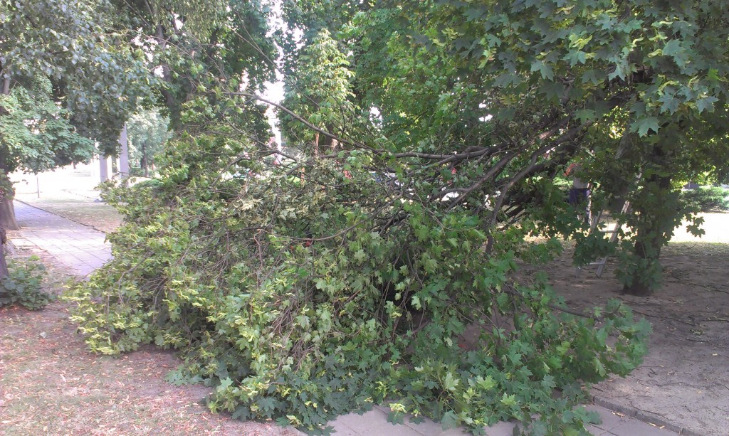 Dne 9.8.2013 ve večerních hodinách byla jednotka povolána na žádost starosty obce Tvrdonice ke spadlé větvi v parku na ulici Slovácká. Jednotka na místo vyjela s vozidlem        T-815 CAS 20 (1+4). Po příjezdu na místo bylo zjištěno, že se jedná o jednu spadlou větev přes chodník. Jednotka provedla odstranění větve pomocí motorové pily. Po dostavení starosty obce    na místo, bylo dohodnuto o odstranění ještě dvou suchých stromů, které ohrožovaly obyvatele pádem. Jednotka odstranila stromy a vrátila se zhruba po hodině a půl na základnu.