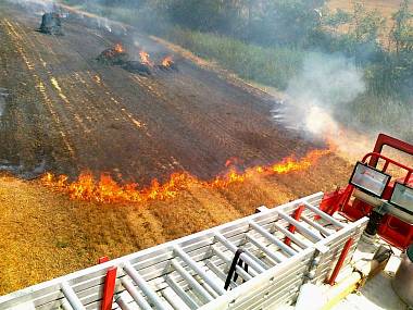 Dne 30.7.2013 jednotka byla znovu povolána k požáru pole s balíkama slámy. Jednotka na místo vyjela s vozidlem Tatra 815 CAS 20 ( 1+5) a s vozidlem Ford Transit DA (1+3). Při jízdě k zásahu bylo upřesněno, že se jedná o požár pole směr Moravská Nová Ves u státní silnice I/55, která vede na Hodonín. Při příjezdu na místo již zde zasahovala profesionální jednotka HZS Břeclav a jednotka SDH Hrušky. Naše jednotka prováděla hašení pomocí 1VTP, jednoho „C“ proudu a jednoduchých hasebních prostředků. Na místo se dostavila ještě jednotka SDH Týnec. Po uhašení strniště, bylo provedeno rozebíraní a dohašování balíků slámy. Zhruba po dvou hodinách byly jednotky odeslány na základnu a na místě zůstala místní jednotka SDH Hrušky na dohlídání. | Obec | Hrušky |